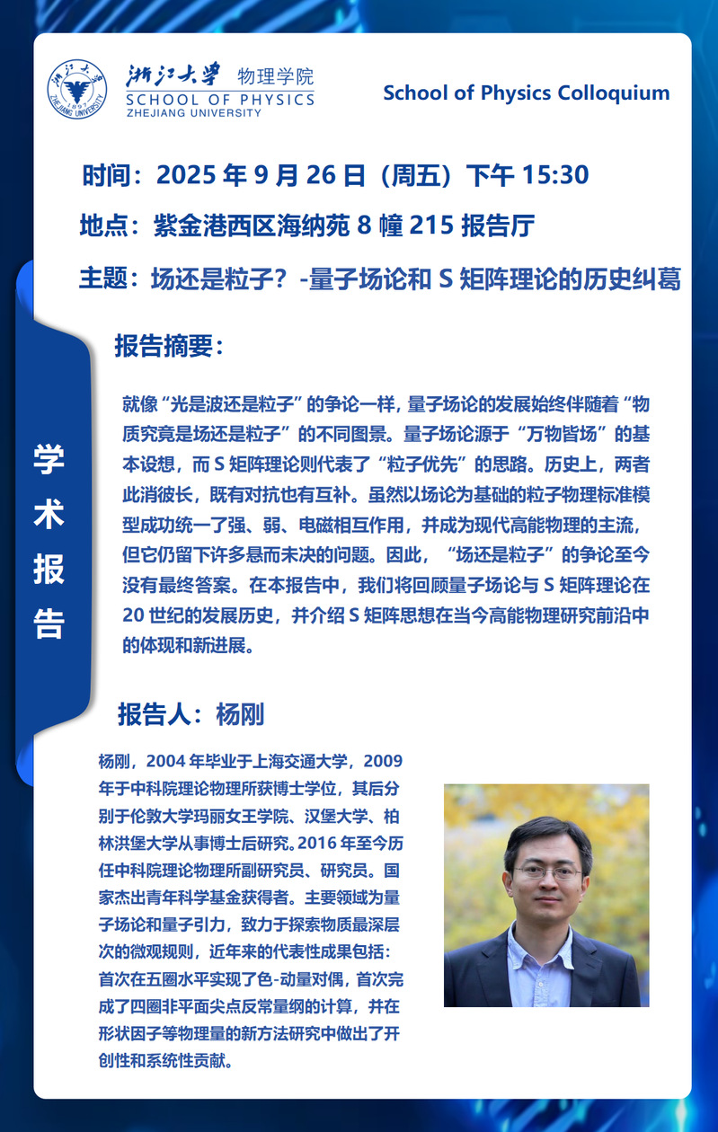 物理学院杨刚学术报告的通知(School of Physics Colloquium)